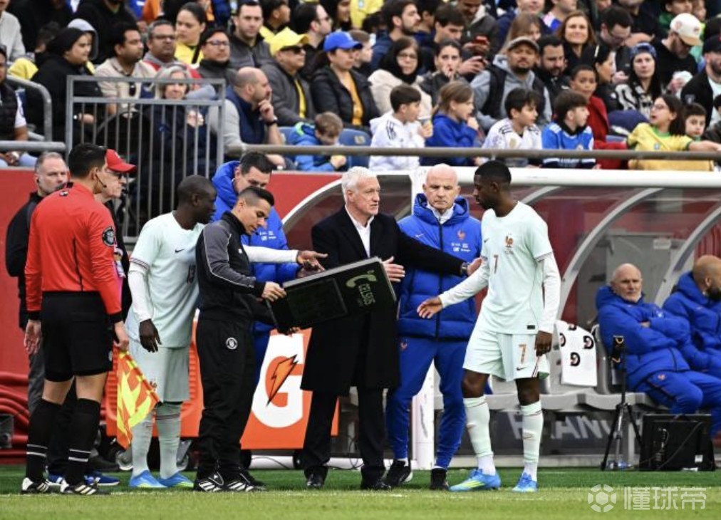 北京时间3月27日,在一场友谊赛中,巴西1-2法国。在比赛进行到一小时左右时,法国队主教练德尚将登贝莱换下场。据《队报》报道,这位巴黎圣日耳曼前锋似乎抱怨右大腿不适。