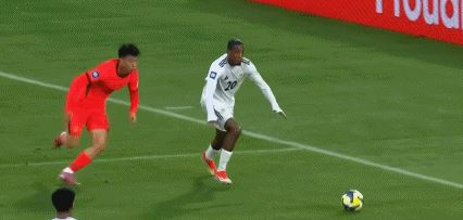 第31分钟,王钰栋拉扯库沃斯被黄牌警告。