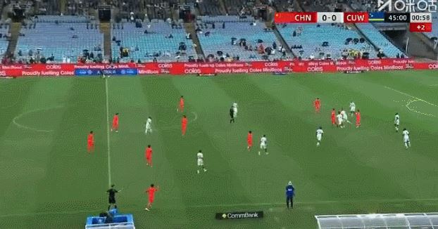 FIFA系列赛,中国男足vs库拉索,半场国足与对手战成1-0。