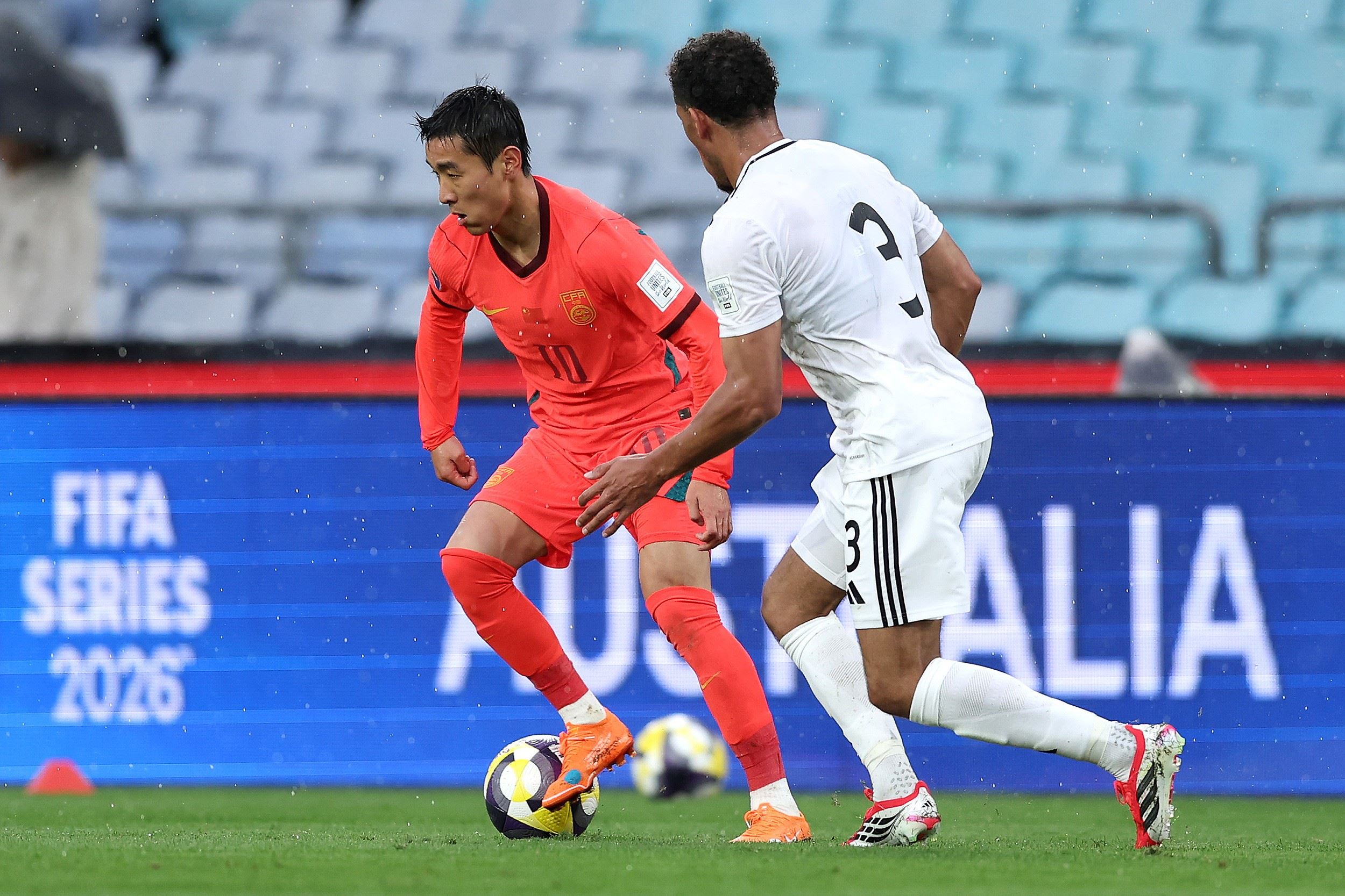 本场比赛上半场补时阶段,张玉宁头球后蹭,韦世豪不停球左脚抽射得分,国足1-0领先。