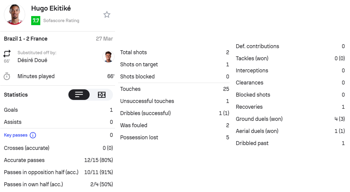 这是埃基蒂克第7次为法国出场,打入的第2球。