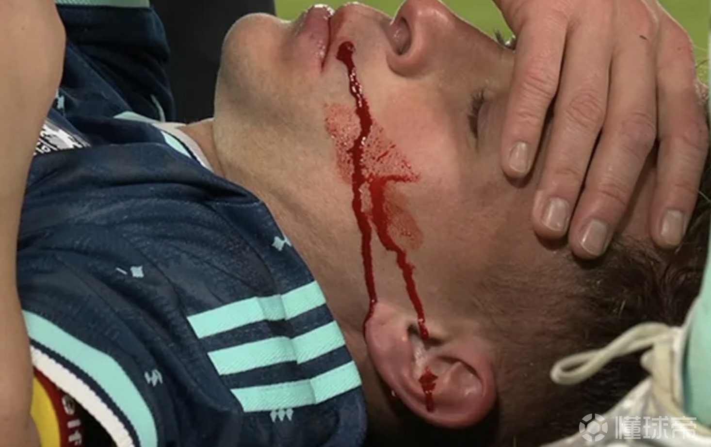 基米希在一次争顶过程中,不慎被对手的肘部击中面部,造成划伤。当基米希倒地时,鲜血顺着脸颊流下,场面令人揪心。