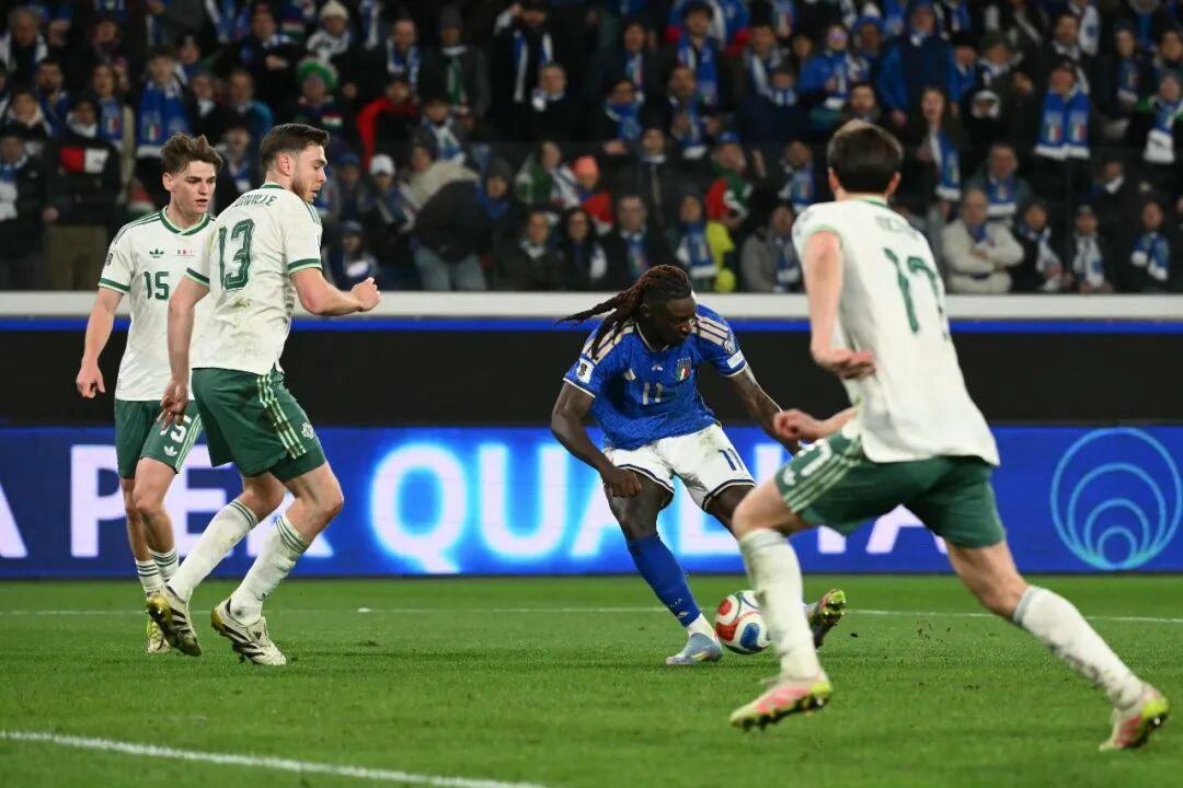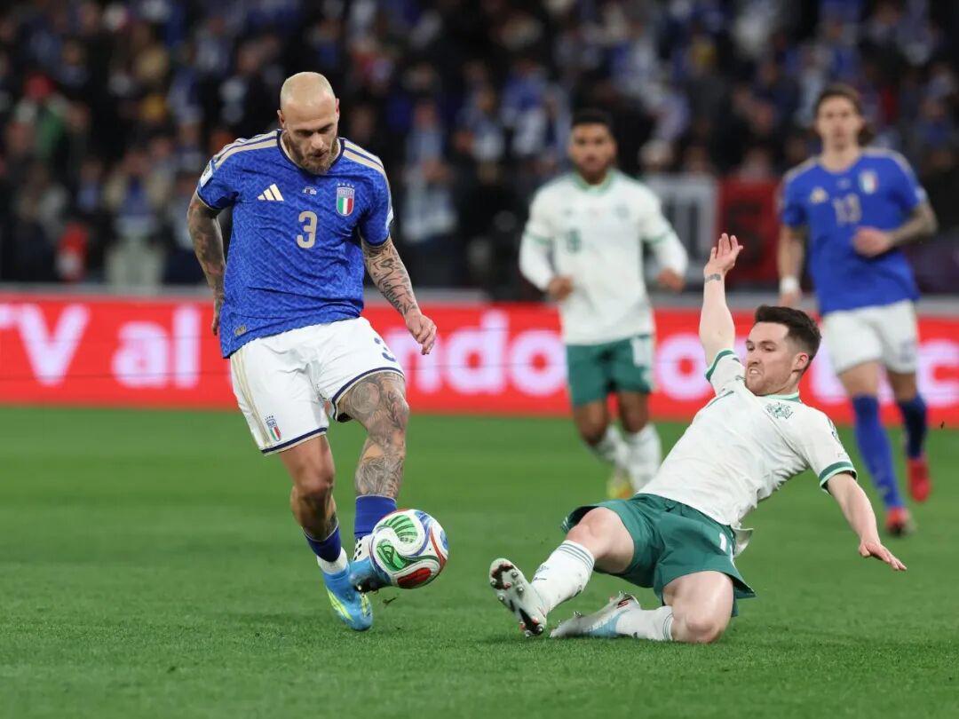 意大利上一次在世界杯淘汰赛触球?格罗索,柏林冠军夜对法国的点球大战。意大利上一次在世界杯取得进球?巴洛特利,他将坎德雷瓦的传中砸进英格兰大门。意大利在2006年之后,在世界杯上赢过几场球?1场,就是对阵霍奇森的“三狮军团”。意大利在21世纪的附加赛又赢过几次?今晚之前,答案是“0”。蓝衣军团上次从附加赛顺利杀出,还要追溯到1998年世界杯预选赛——莫斯科的大雪,布冯的闪耀,橙色的皮球。那已经过了太久。瑞典和北马其顿构成灰色的记忆,以至于出现在贝尔加莫的北爱尔兰,也显得令人害怕。