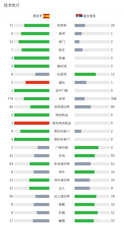 第43分钟,奥亚萨瓦尔禁区外远射破门,西班牙2-0塞尔维亚