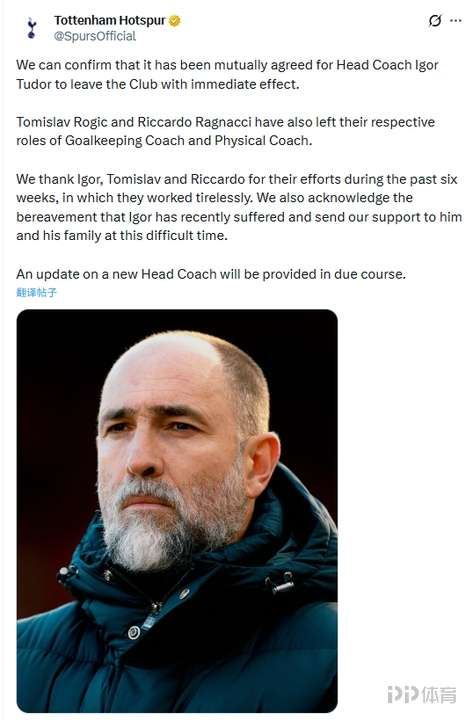 官方消息,热刺临时主教练图多尔下课,提前结束了原本将在本赛季末到期的合同。图多尔此次执教热刺仅持续了44天。图多尔2月14日被任命为热刺临时主帅,接替下课的弗兰克。然而上任以来球队只取得1胜1平5负的战绩,联赛更是延续13轮不胜,目前仅高降级区1分,保级形势危急。