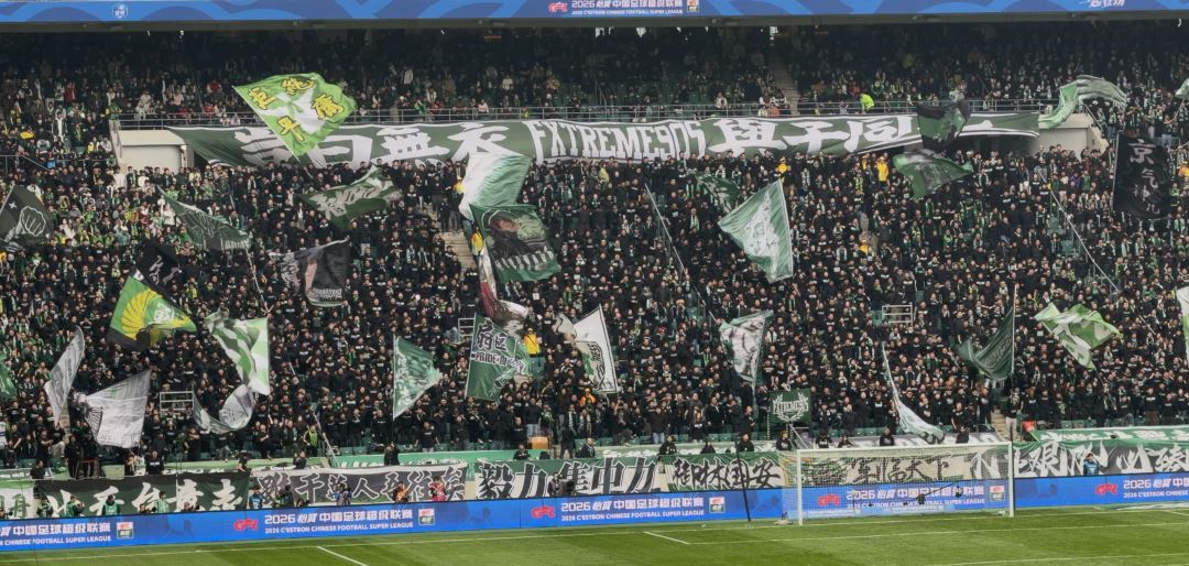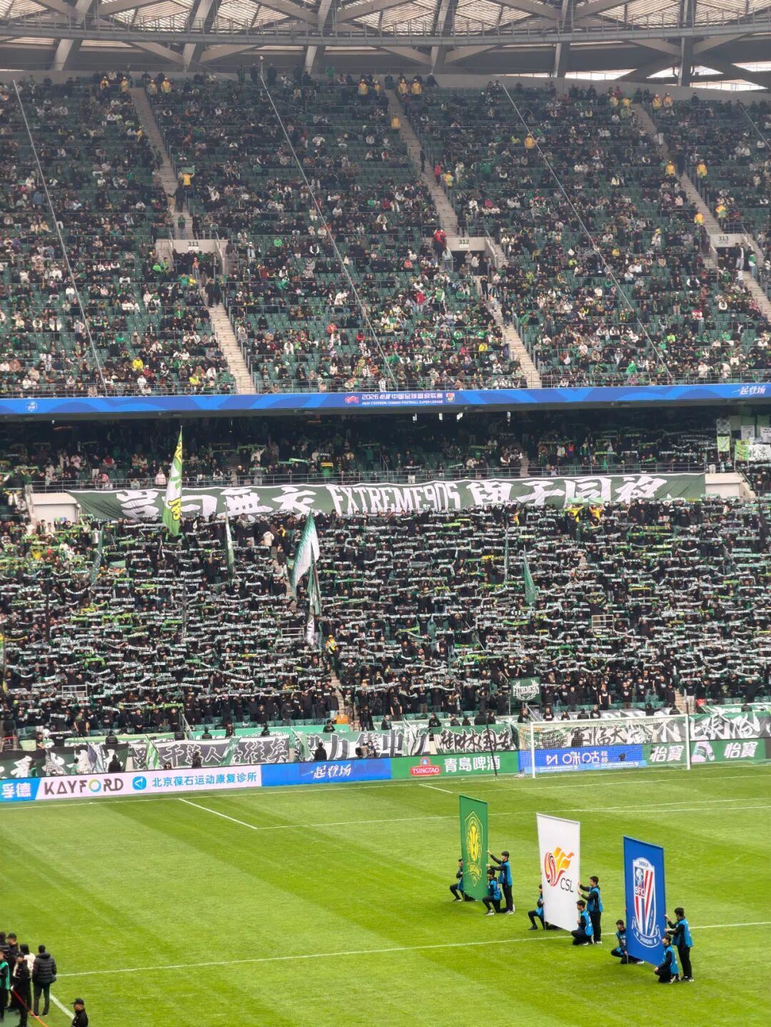 我给一位站在球门后的北京媒体朋友发去了消息:没有TIFO也就罢了,怎么北看台的二层都还没坐满?后来,另一位北京朋友解答了我的疑惑,他说这一天安检很慢,好多人还被堵在入场口。