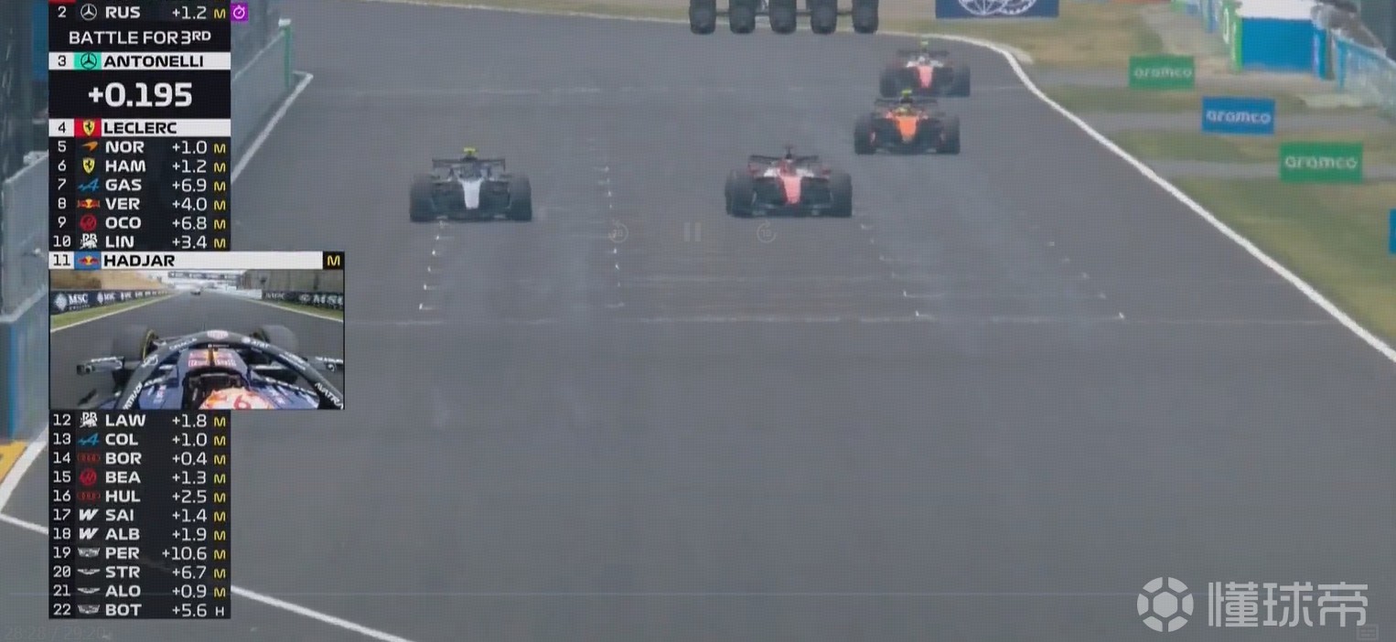 比赛尾声拉塞尔在S3超过勒克莱尔,勒克莱尔一号弯坚决走外线反超拉塞尔。