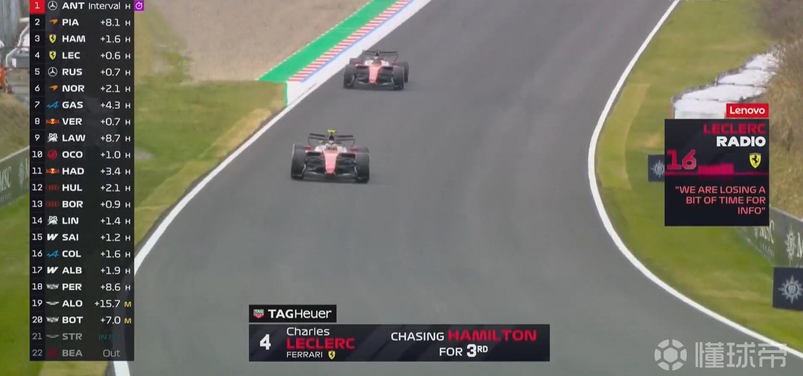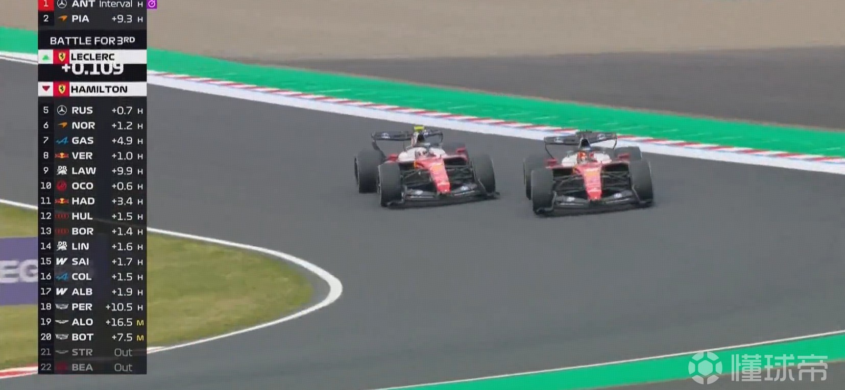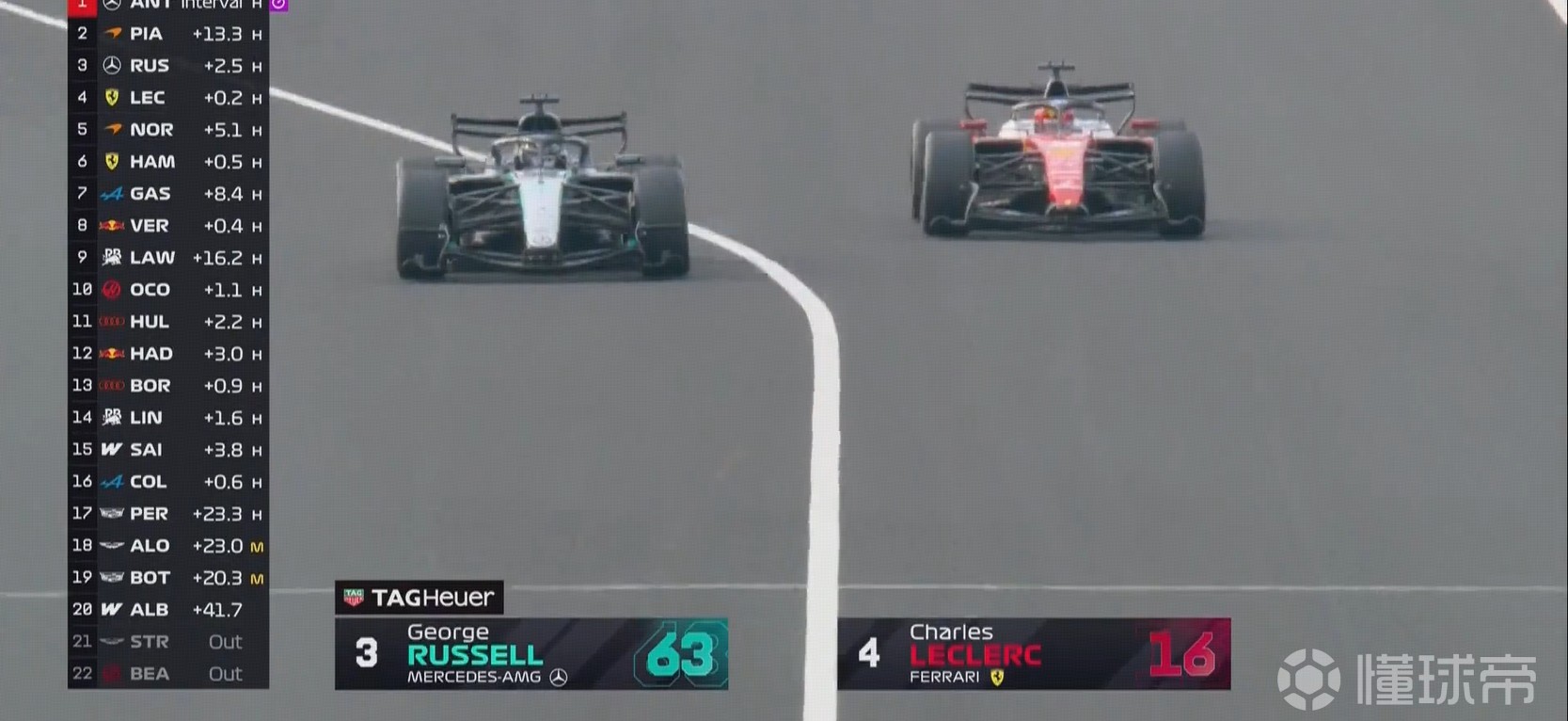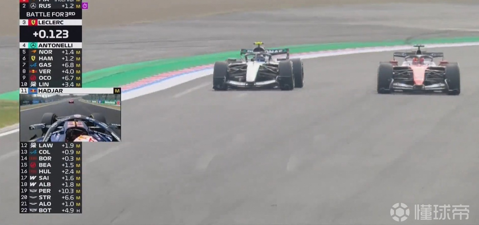 安东内利重演拉塞尔的超越,勒克莱尔反击成功。