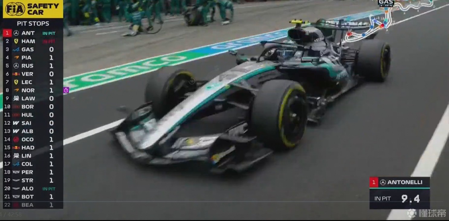 安全车退出,安东内利扬长而去,汉密尔顿突袭拉塞尔得手。