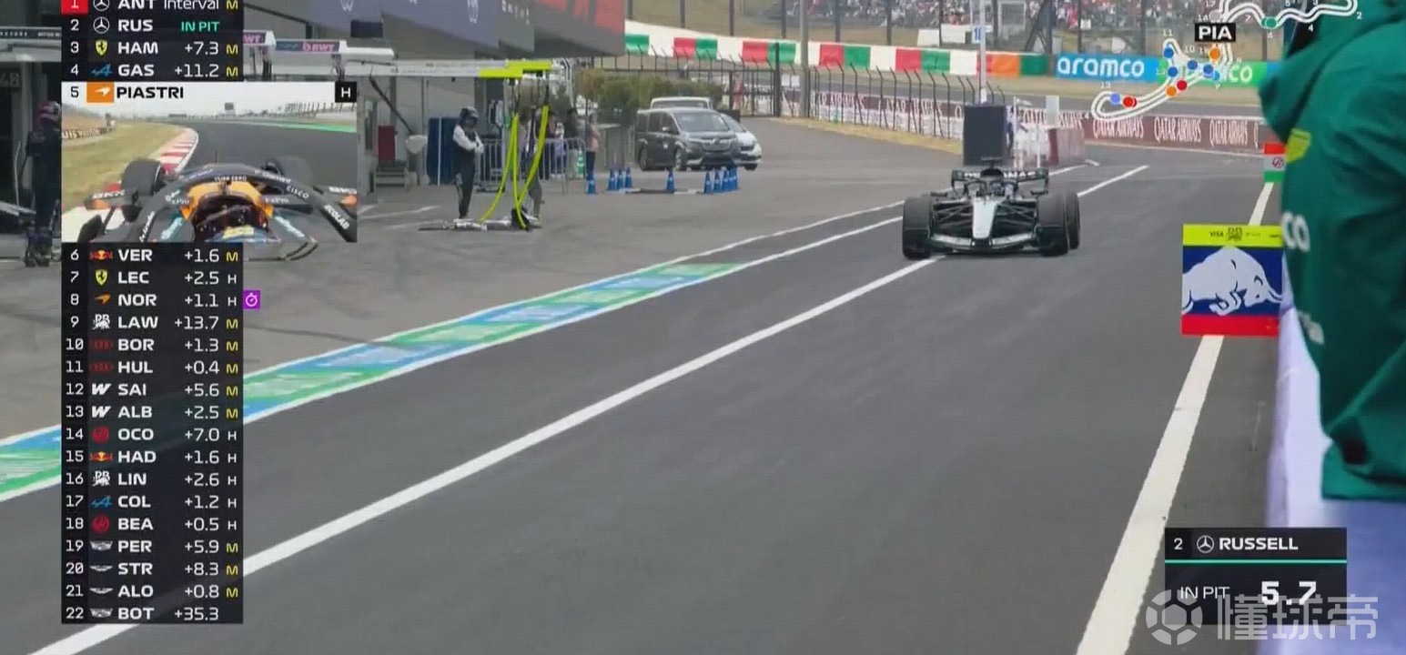 拉塞尔在干净空气里暂时领跑,随后进站落在皮亚斯特里身后。