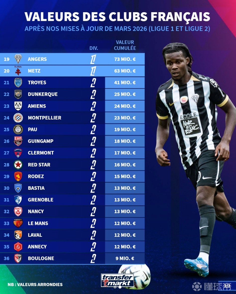 19. 昂热 7300万欧元