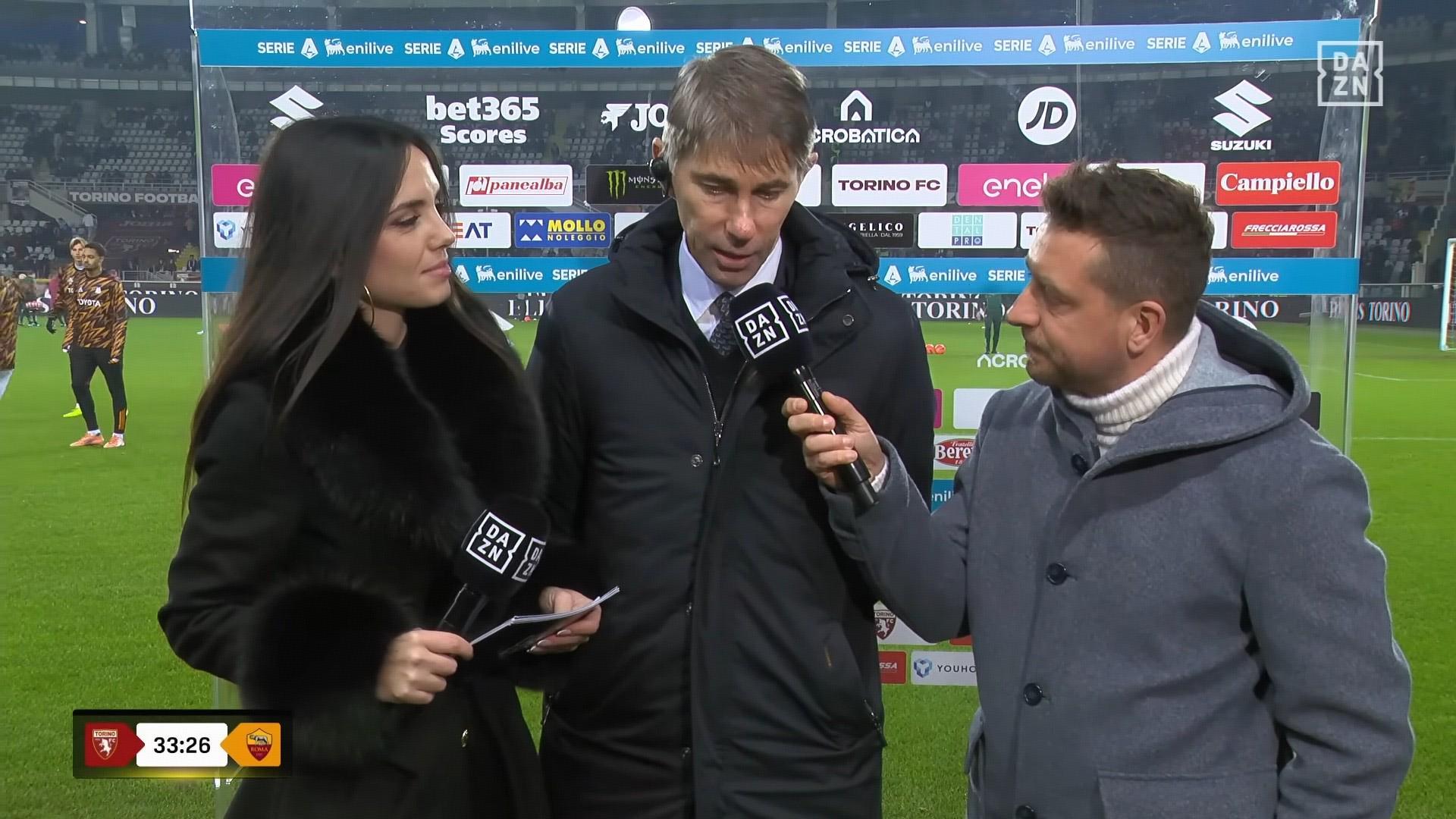 在意甲第21轮客场挑战都灵的比赛开始前,罗马体育总监马萨拉接受了来自DAZN的采访。
