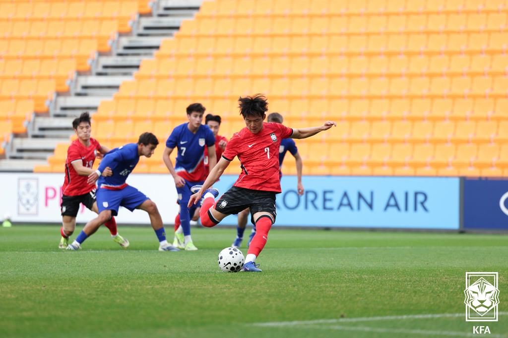 我们再看韩国亚运队的消息。昨晚,韩国亚运队在天安韩国足球中心与来访的美国U22进行了一场热身赛,最终轮换10名主力的韩国以1-4的比分惨败。由于美国U22的球员平均年龄为21.2岁,大多数是洛杉矶奥运会的适龄参赛球员,因此面对以K联赛1级和2级组成的本土部队,踢得还是很轻松的。这场失利,也让韩国亚运队主帅李敏成看到了球队目前存在的不足,即主力和替补之间的差距。