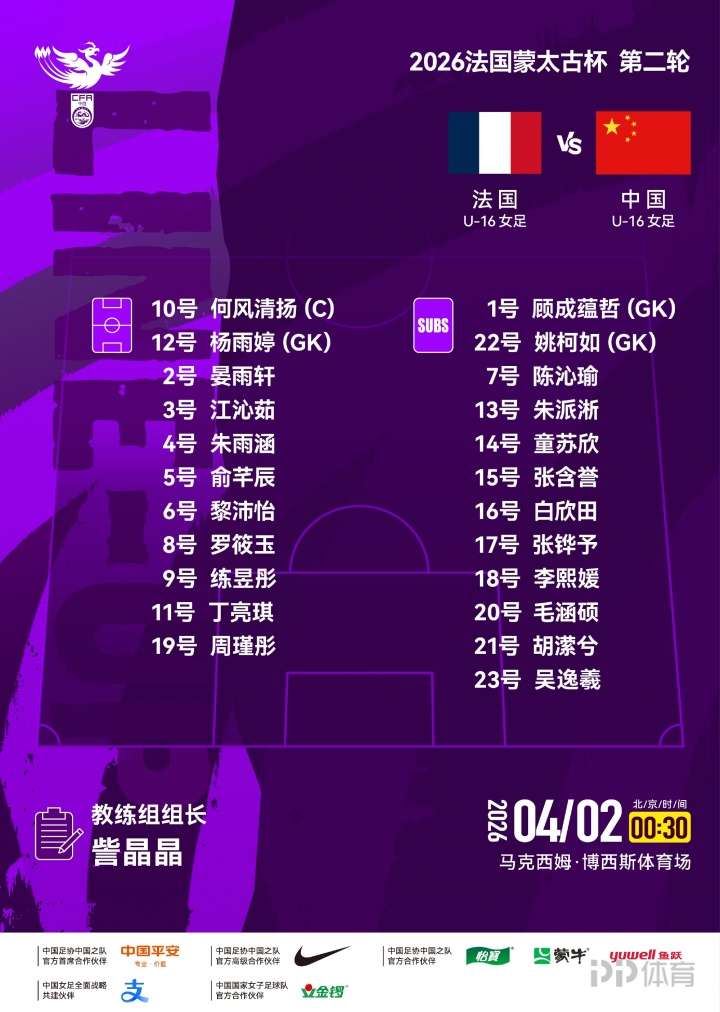 北京时间4月2日00:30,蒙太古女杯小组赛A组第2轮,中国女足U16在法国马克西姆·博西斯体育场对阵法国女足U16。上半场,周瑾彤凭借任意球直接破门为中国队取得领先;下半场开场,何风清扬禁区内停球转身低射扩大比分,随后法国队依靠点球扳回一城。最终,中国女足U16 2-1击败法国女足U16。小组赛第三轮,中国女足U16将在北京时间4月4日00:30对阵墨西哥女足U16,法国女足U16则将对阵英格兰女足U16。