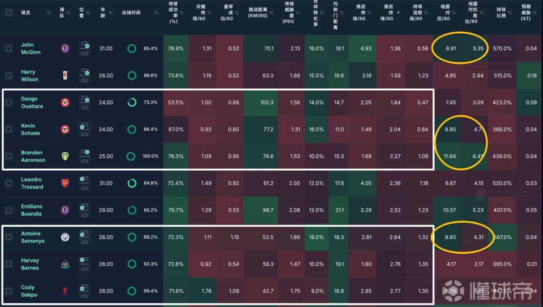 而这种能跑的球员里面,大部分地面对抗都不虚(主动参与防守,主动上身体对抗),无论场均的对抗次数,以及场均的对抗成功率都不算低。