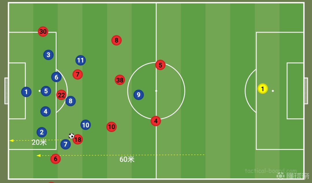 常规情况下,要达成高的纵深持球推进,一般需要具备两点:(1)较大的纵深空间;(2)球员自己较快的极限速度。