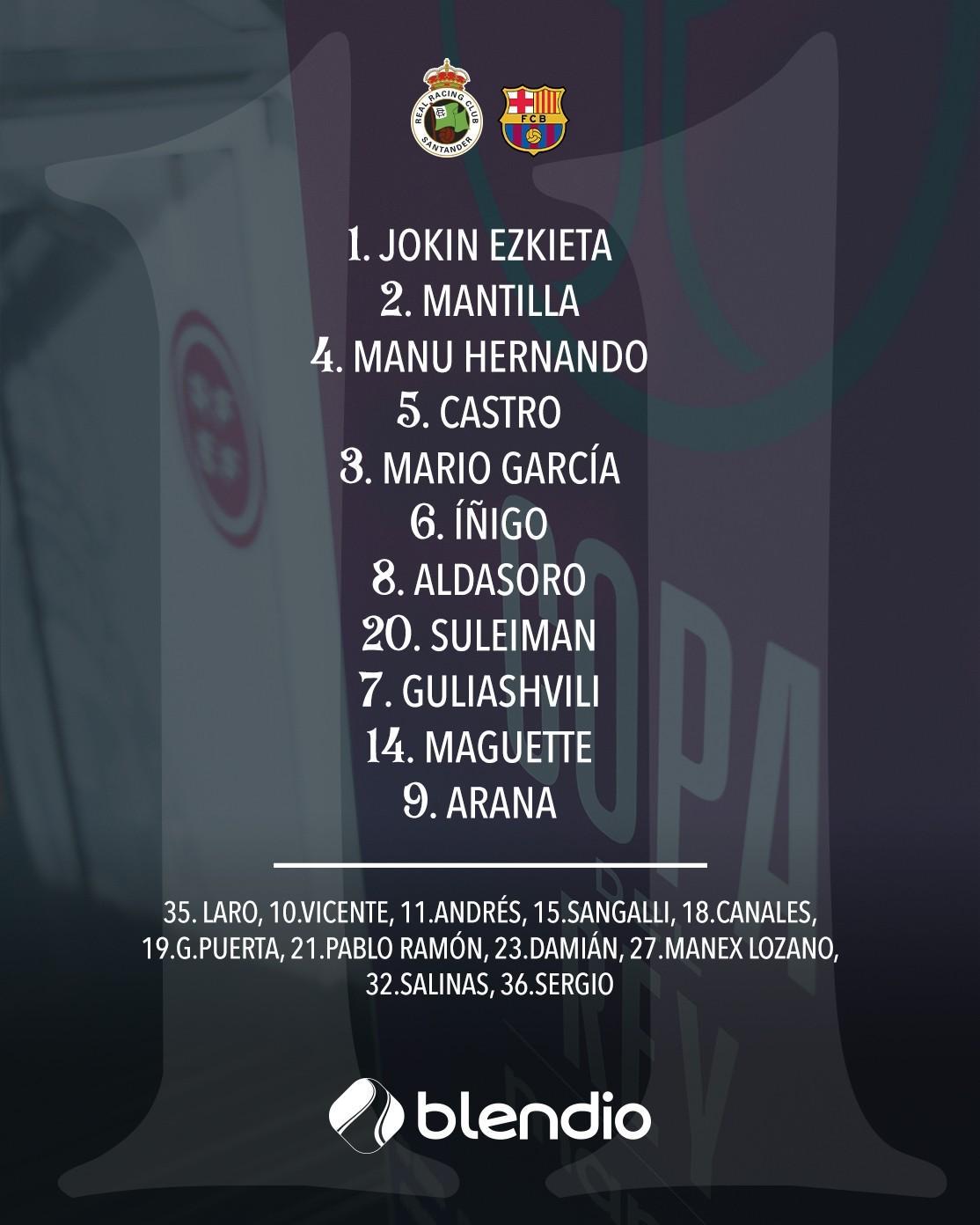 桑坦德首发:1-埃斯基耶塔、3-马里奥-加西亚、2-曼蒂利亚、5-哈维尔-卡斯特罗、4-马努-埃尔南多、14-马盖特-盖伊、8-阿尔达索罗、6-赛恩斯-马萨、20-苏莱曼-卡马拉、9-胡安-阿拉纳、7-古利亚什维利