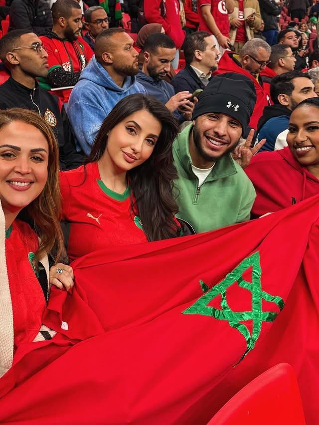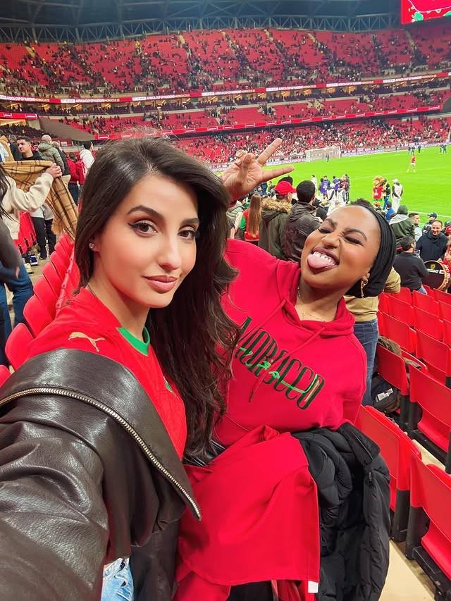 据海外媒体消息,摩洛哥绯闻女友法特希(Nora Fatehi)现场观战了非洲杯,球迷们纷纷找她合影。