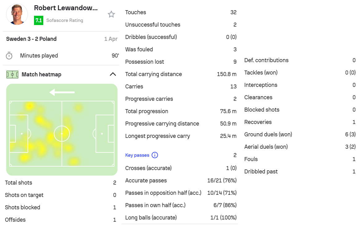 12.莱万,瑞典3-2波兰,首发打满全场。