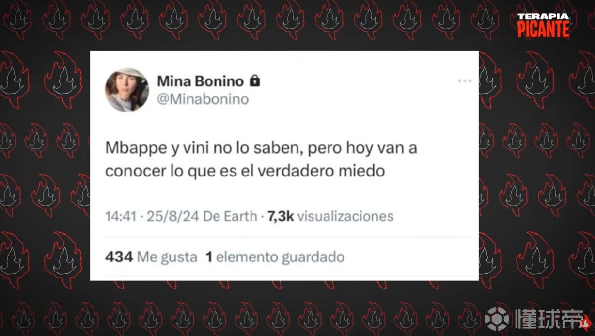 米娜:费德是8号,姆巴佩是10号,维尼修斯是7号。所以我们刚好夹在中间,而真正可怕的是……