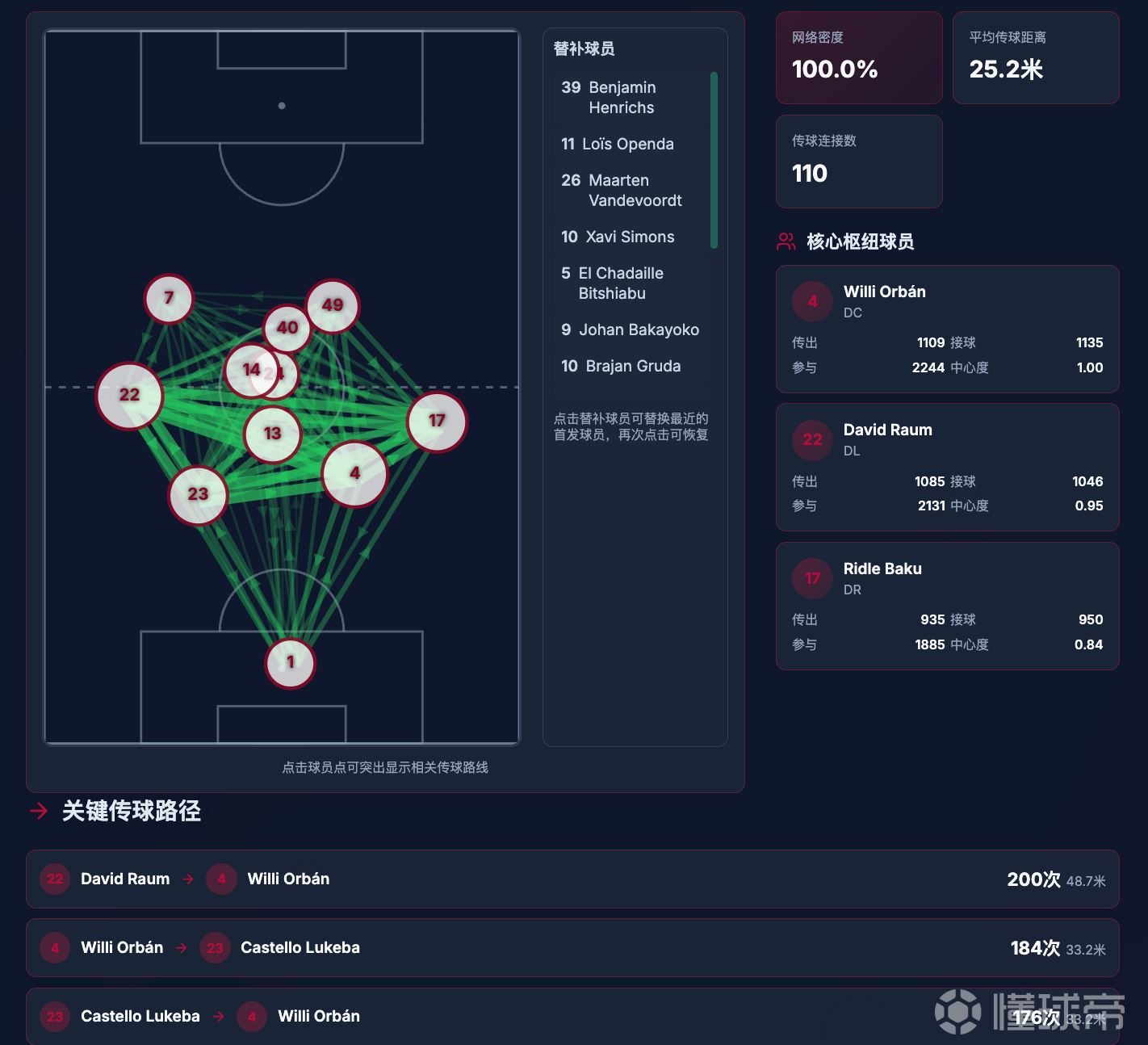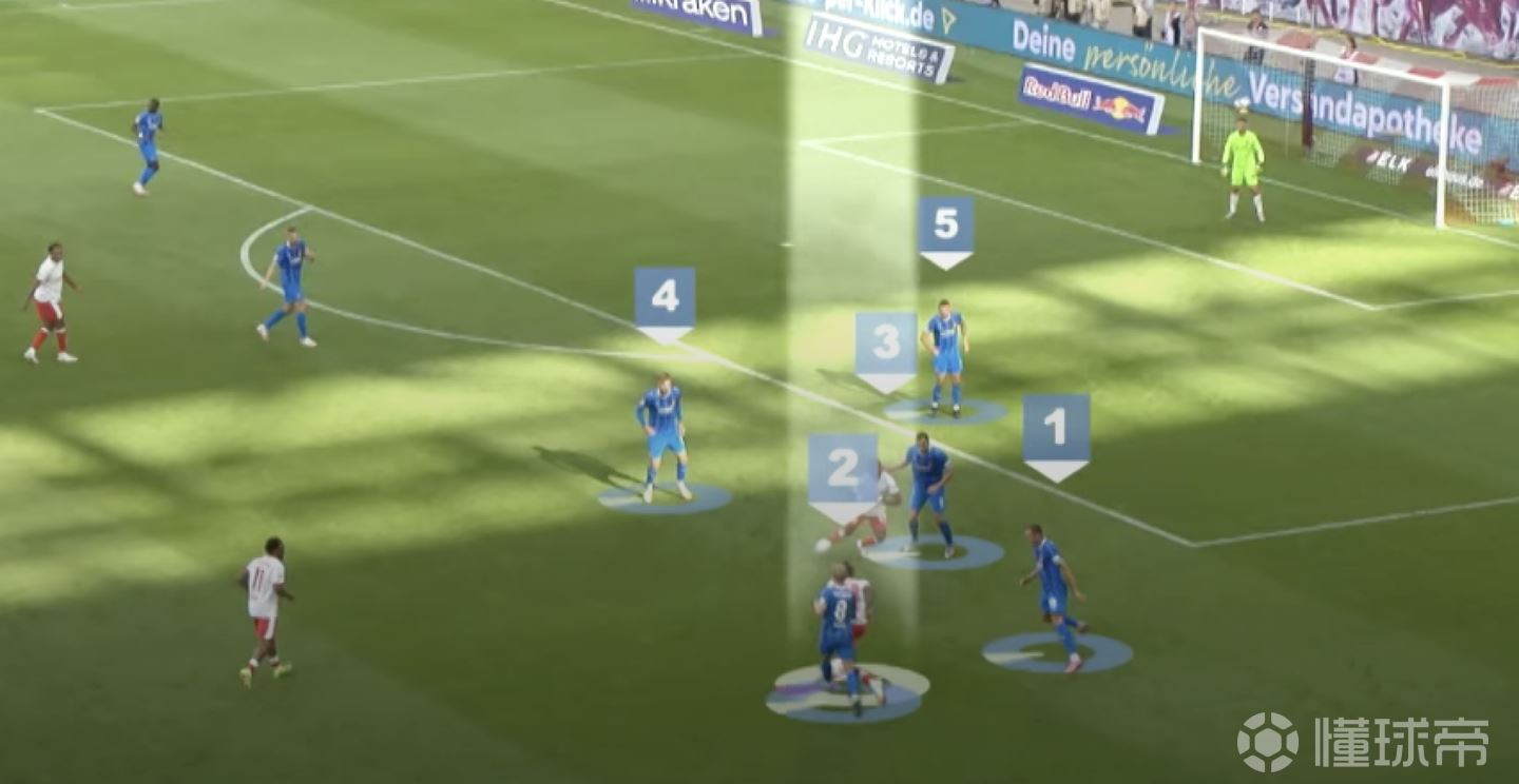 而在战术适配性方面,莱比锡其实同样也是打中路的层层推进的: