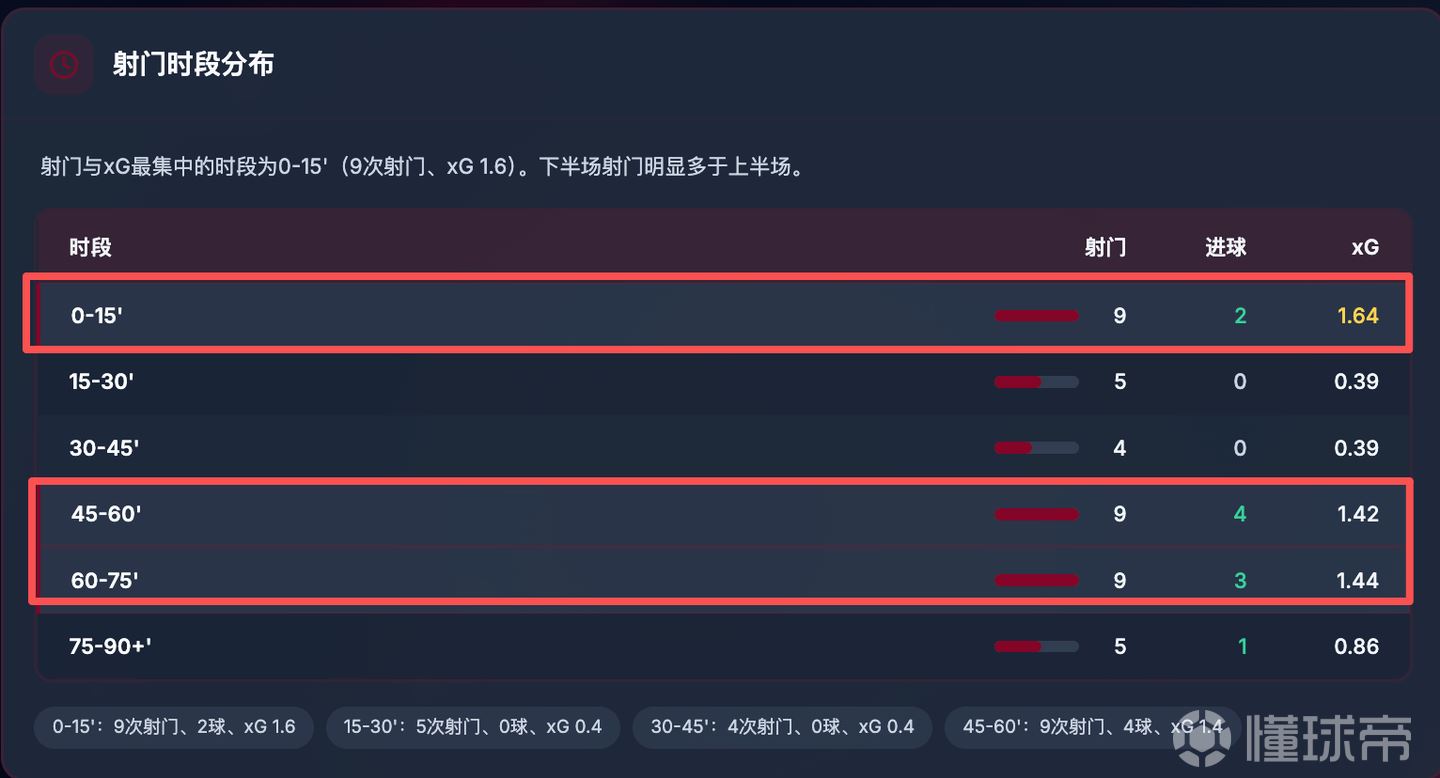他的进球和射门时间段,主要是分布在一开场,和利物浦整体慢热的风格截然不同,他进入竞技状态的速度很快,一般情况下都是从走出球员通道之后先拔头筹的那个。