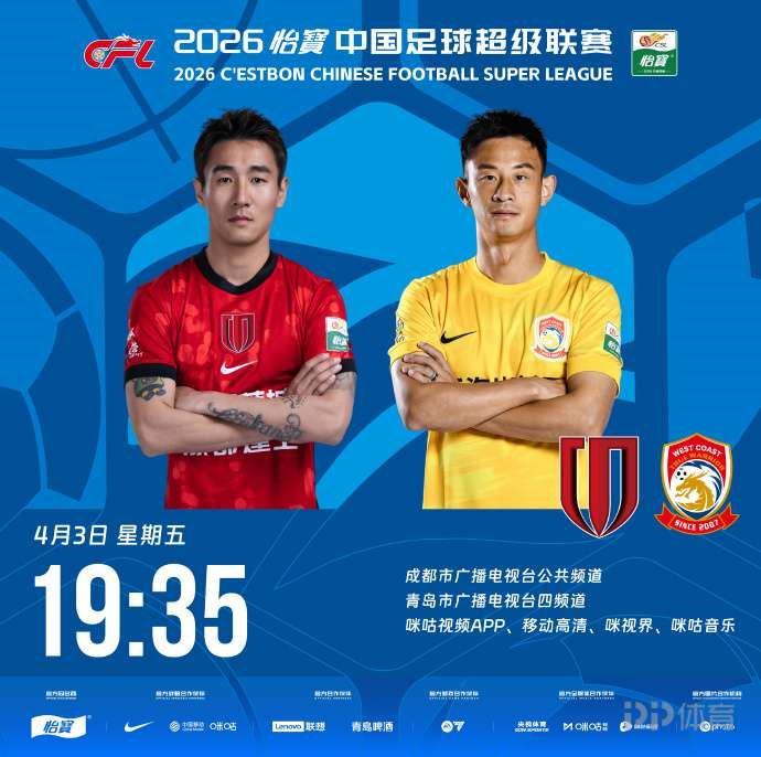 北京时间19:35,中超第4轮,成都蓉城主场对阵青岛西海岸。赛前双方首发出炉。