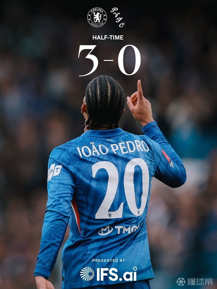 此役主场对阵维尔港,切尔西在上半场凭借哈托和若昂-佩德罗各入一球以及帕尔默制造对手乌龙,取得3-0领先。