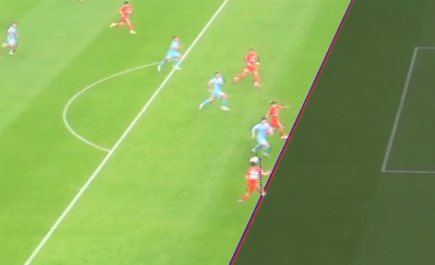足足5分钟之后,视频助理裁判要求主裁判回看慢镜头。从慢镜头来看,在杨希头球瞬间,刘祝润处于越位位置,进球无效。