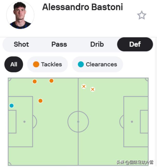 防守端,他争顶成功率100%,有5次铲断,在后场的3次都成功,2次失败都是在前场。