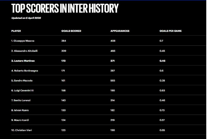 1、本场梅开二度,国米的进球来到173球,让劳塔罗超于了博宁塞尼亚,独享国米队史射手榜第三位。