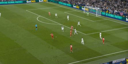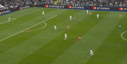 于是在第18分钟,在经历了对手的连续施压过后,在赫伊森和居莱尔的帮助下,皇马打出了他们想要的进攻,这是他们本场第一次反击,也是相对威胁较大的反击之一: