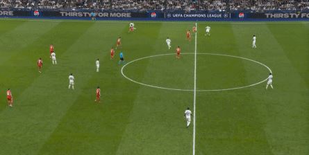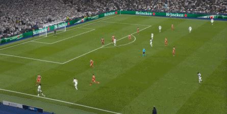 主场落后,而且很快就变成了两球落后,他们显然要抓住下半场的开局阶段来打出强度,这一点确实有体现,那就是皇马的进攻更为直接了,给拜仁中卫带来的压力越来越大: