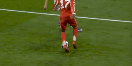 本场比赛,奥利塞触球82次,是拜仁前场四人中触球次数最多的,球队的进攻方向自然在朝他这一侧大幅度倾斜,但在上半场的开局阶段结束之后,他这一侧的成功进攻其实就是两次由逆足送出的传中: