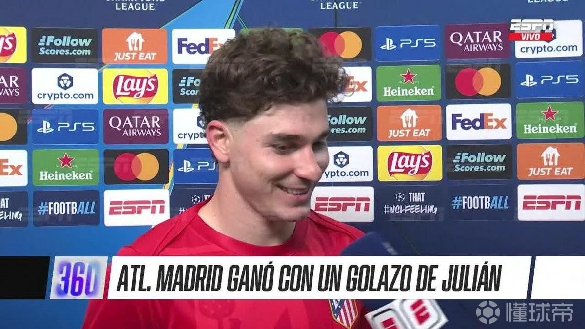 帮助球队在欧冠1/4决赛中客场2-0击败巴萨后,马竞前锋阿尔瓦雷斯接受了Movistar+的采访,此役他通过任意球为球队打破僵局。