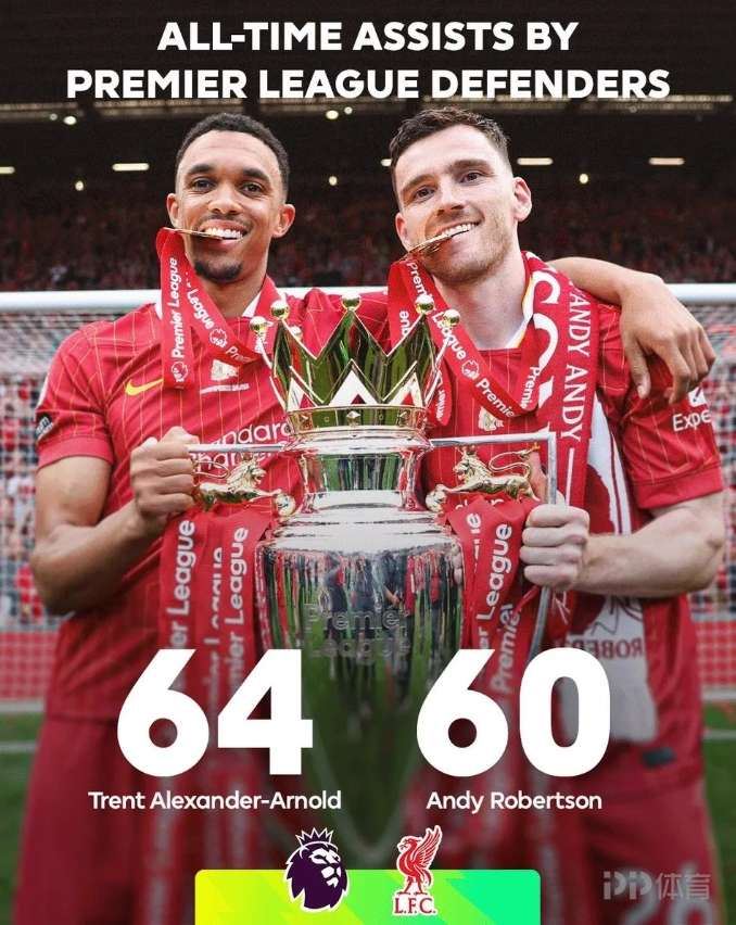 据统计,在英超后卫历史助攻榜中,罗伯逊以60次助攻排名第二,仅次于前队友阿诺德的64次。