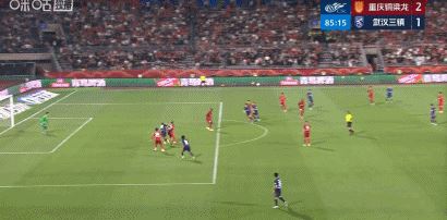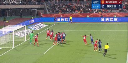 第74分钟,扳回一城,卡迪斯头球得分,三镇1-2铜梁龙