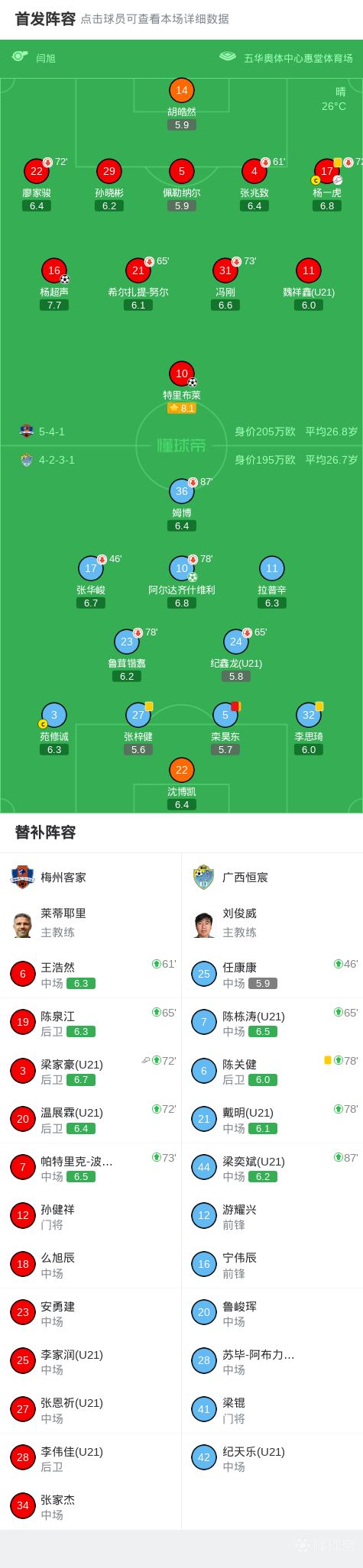 第51分钟,杨一虎助攻,特里布莱低射破门扳平比分,梅州客家1-1