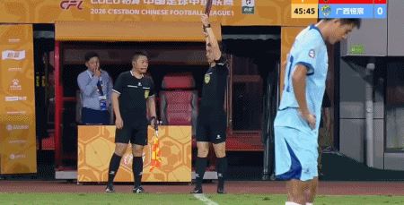 第62分钟,栾昊东拉拽犯规,吃到第二张黄牌被罚下