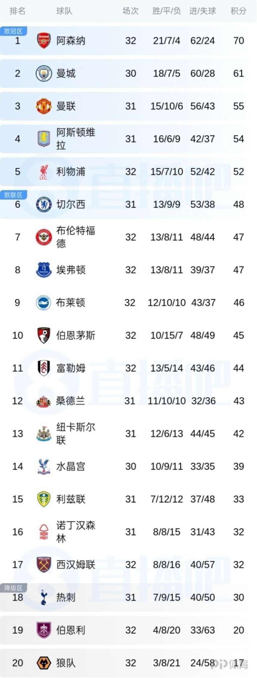 英超第32轮,利物浦2-0轻取富勒姆终结3轮不胜,先赛领先第6切尔西4分。本轮切尔西将对阵曼城,两队将面对争欧冠或争冠的关键战役。