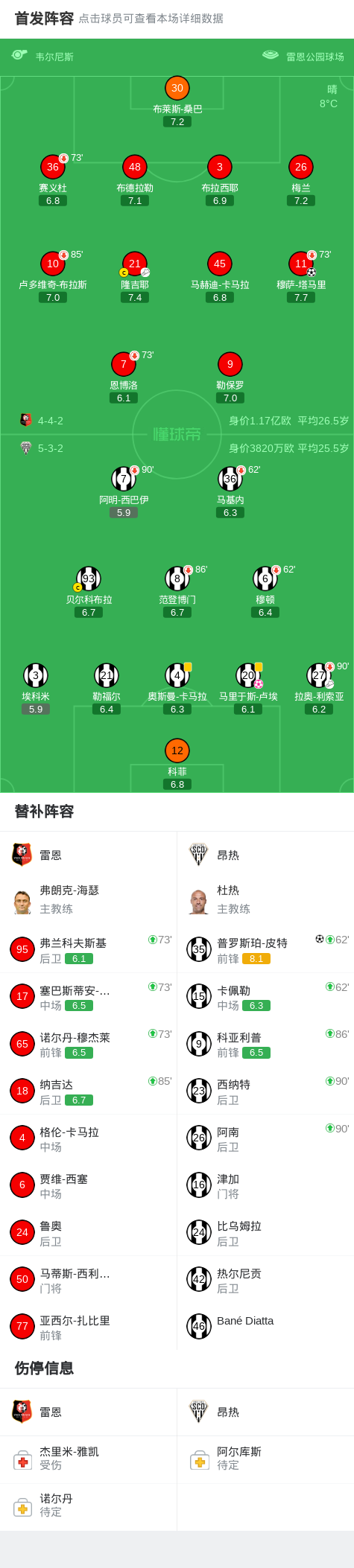 第25分钟,雷恩球员隆吉耶助攻穆萨-塔马里打入一球。