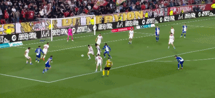 第45+2分钟,塞维利亚角球,古德利头球破门,塞维利亚2-1马竞