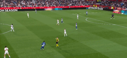第35分钟,扳平比分!博尼亚尔头球冲顶破门,塞维利亚1-1马竞
