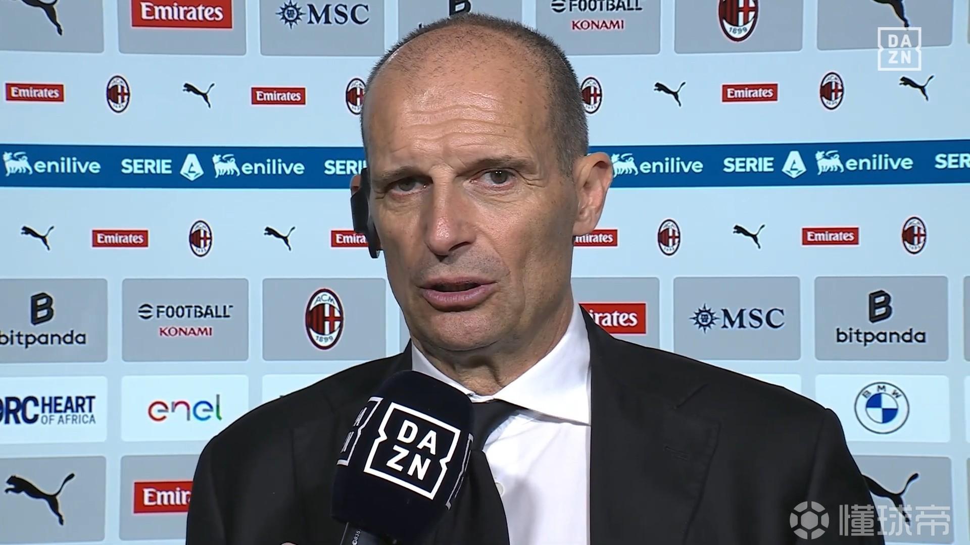 米兰在意甲第32轮主场0-3负于乌迪内斯,主教练阿莱格里在赛后接受了DAZN的采访。