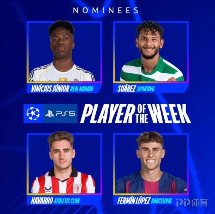 欧冠官方公布联赛阶段第7轮最佳球员候选。