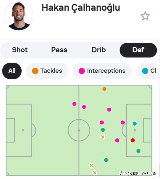 恰尔汗奥卢防守示意图(国米进攻防线右向左)