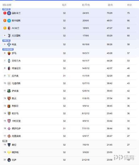 在国米4-3击败科莫后,本轮意甲佛罗伦萨vs拉齐奥以外的比赛已经全部结束。意甲积分榜的形势也迎来了变化。