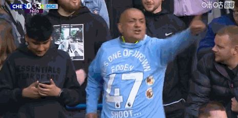 值得一提的是,这位曼城球迷似乎是认准了镜头还会对准他,他随后套上了一件福登的特制球衣,表达对其的支持。