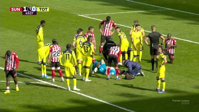 丢球后没多久,场上的惊魂一幕就来了。布莱恩·布罗贝似乎轻轻推了罗梅罗一把,导致奋力回追活球的罗梅罗直接和自家门将金斯基撞得人仰马翻。桑德兰球星诺亚·萨迪基见状,急忙疯狂挥手召唤队医赶紧进场救人。
