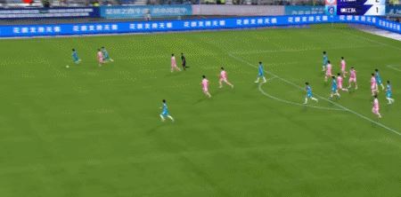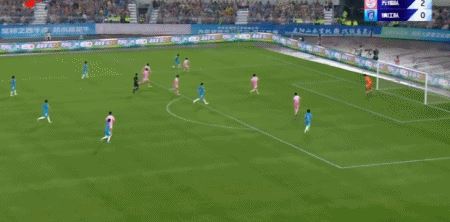 第14分钟,右路传中,杨天宇鱼跃头球未顶到,错失得分机会